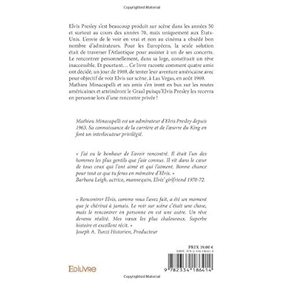 Elvis Presley s’est beaucoup produit sur scène dans les années 50 et surtout au cours des années 70, mais uniquement aux États-Unis. L’envie de le voir en vrai et non au cinéma a obsédé bon nombre d’admirateurs. Pour les Européens, la seule solution était de traverser l’Atlantique pour assister à un de ses concerts. Le rencontrer personnellement, dans sa loge, constituait un rêve inaccessible. Et pourtant… Ce livre raconte comment quatre amis ont décidé, un jour de 1969, de tenter leur aventure américaine avec pour objectif de voir Elvis sur scène, à Las Vegas, en août 1969. Mathieu Minacapelli et ses amis s’en iront en bus sur les routes américaines et atteindront le Graal puisqu’Elvis Presley les recevra en personne lors d’une rencontre privée !